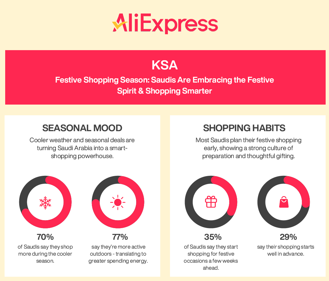 - 72% يرون أن العروض الترويجية والخصومات الحصرية هي المحفز الأكبر للشراء، بينما أكد 70% من مستخدمي AliExpress في المملكة أنهم تمكنوا من تحقيق وفورات كبيرة هذا العام بفضل المنصة.