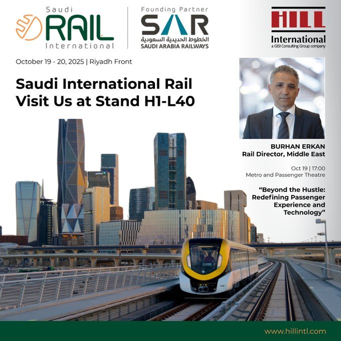 أعلنت شركة Hill International، الرائدة عالميًا في إدارة المشاريع والبرامج، عن مشاركتها كراعي ذهبي في المعرض والمؤتمر السعودي الدولي للخطوط الحديدية ، والذي يُعقد في واجهة الرياض   خلال الفترة من 19 إلى 20 أكتوبر 2025.