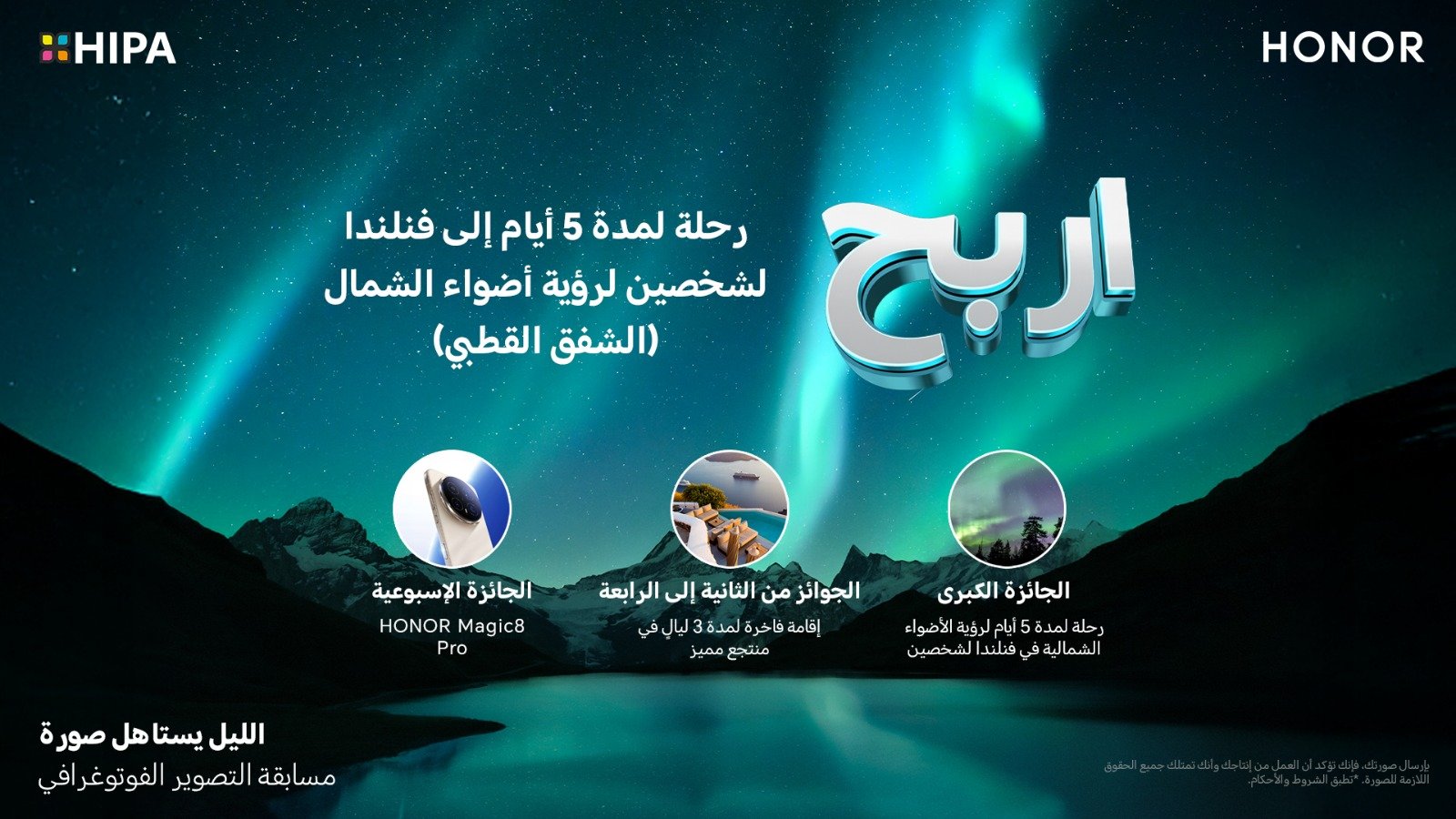 تدعو HONOR، العلامة الرائدة عالمياً في الأجهزة المدعومة بالذكاء الاصطناعي، عشاق التصوير وصنّاع المحتوى في مختلف أنحاء المنطقة للمشاركة في مسابقة «الليل يستاهل صورة» في إطار حملة إطلاق هاتفها الجديد HONOR Magic 8 Pro بالتعاون مع جائزة حمدان بن محمد بن راشد آل مكتوم الدولية للتصوير الضوئي (HIPA). تهدف المسابقة إلى تشجيع المشاركين على التقاط لحظات فريدة من الضوء وسرد القصص، مع فرصة الفوز بجوائز استثنائية.